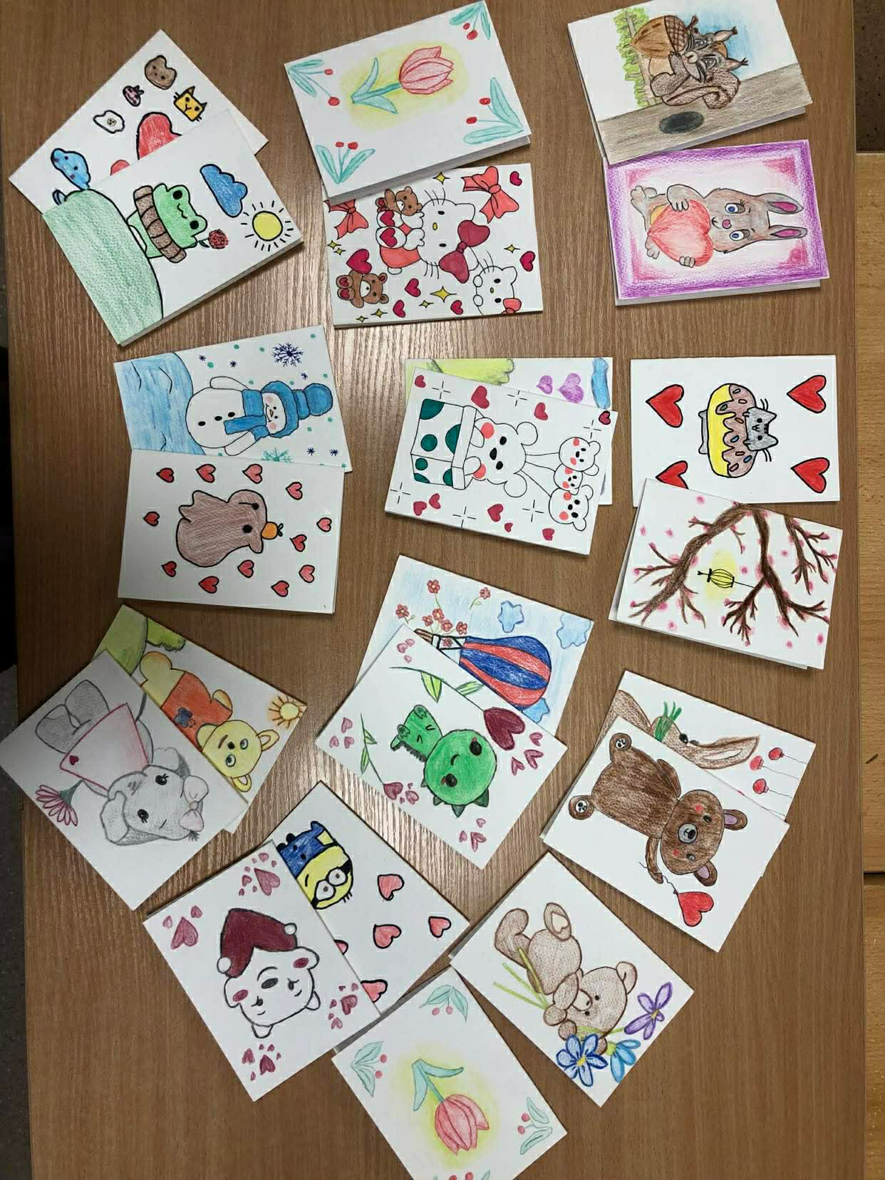 Mokiniai iš anksto ruošėsi šiai dienai – kūrė spalvingus atvirukus, į kuriuos sudėjo nuoširdžius linkėjimus ligoniams.