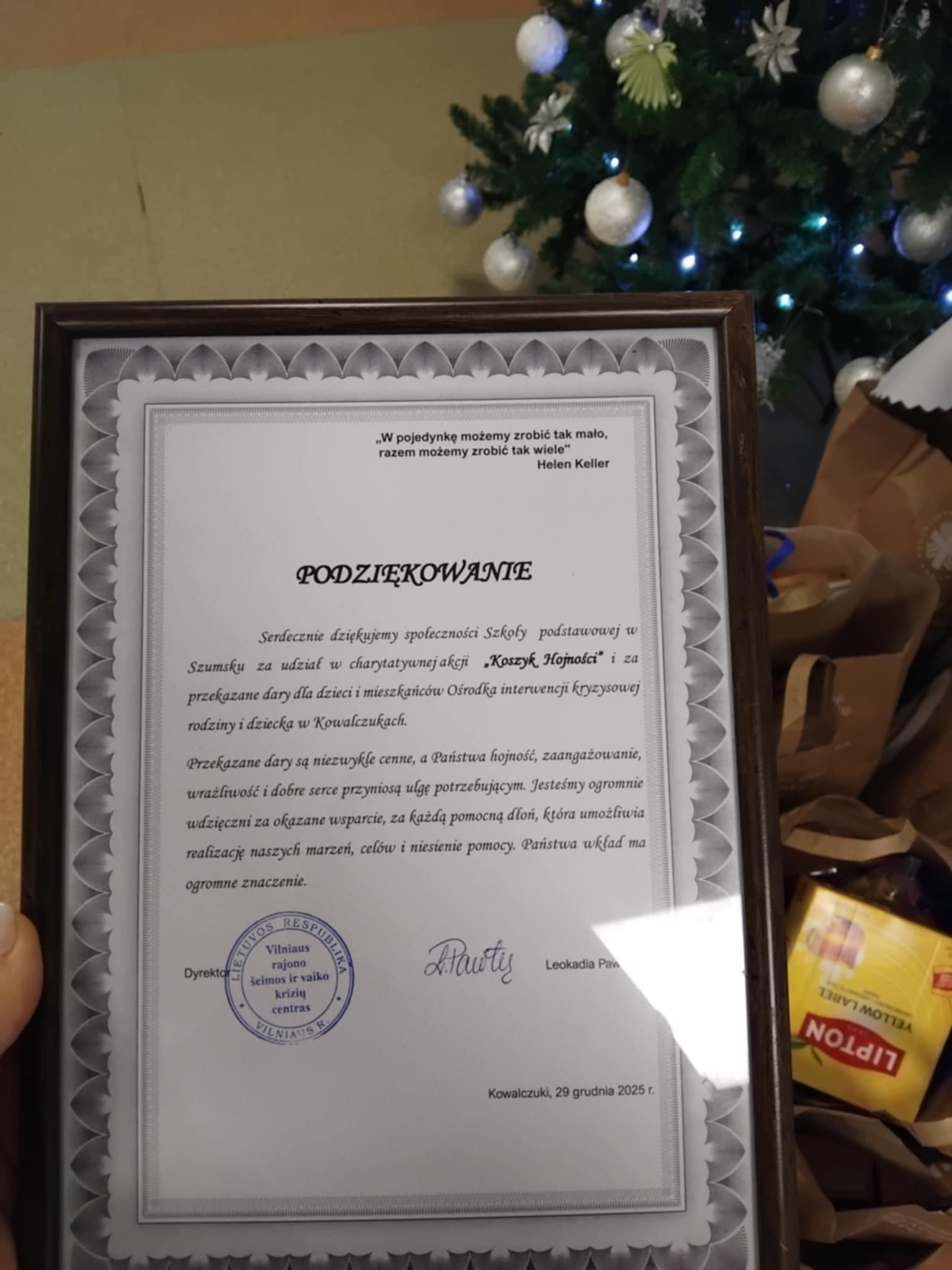 Šumsko pagrindinė mokykla dalyvavo akcijoje „Dosnumo krepšelis“, kurios metu surinkta parama buvo perduota Vilniaus r. Šeimos ir vaiko krizių centrui. Iniciatyva sulaukė teigiamo įvertinimo – mokykla gavo padėką už parodytą bendruomeniškumą ir socialinį atsakingumą.