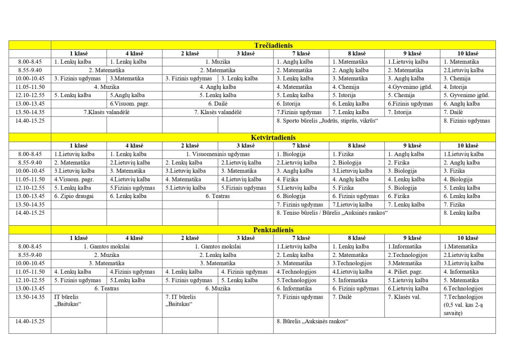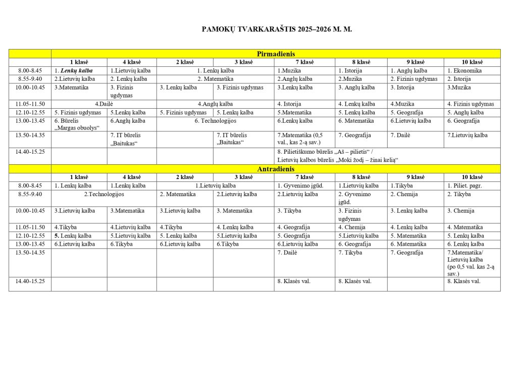 Pamokų tvarkaraštis