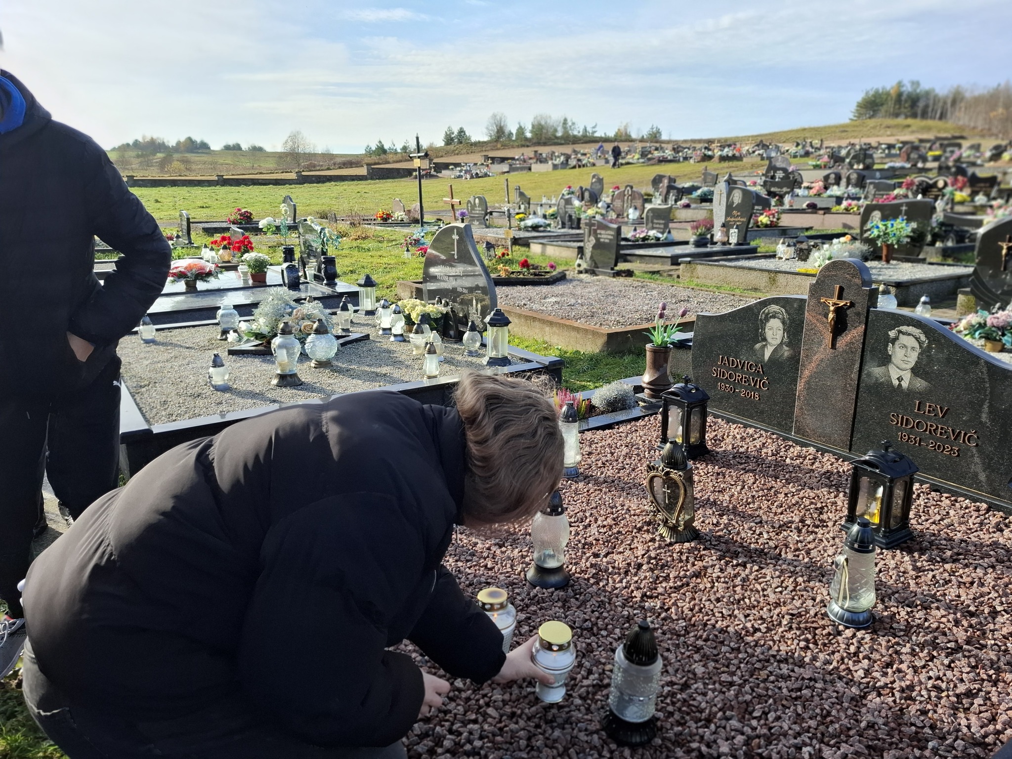 W związku ze zbliżającym się Dniem Wszystkich Świętych , 30 października uczniowie naszej szkoły dołączyli do akcji Ambasady RP i Instytutu Polskiego i wraz z chargé d’affaires a.i. Ambasady RP w Wilnie, Grzegorzem Markiem Poznańskim, odwiedzili miejsce pamięci narodowej — grób żołnierza AK Konstantego Szlachtowicza — na cmentarzu w Szumsku. Uczcili pamięć bohatera, składając wieniec i zapalając znicze.