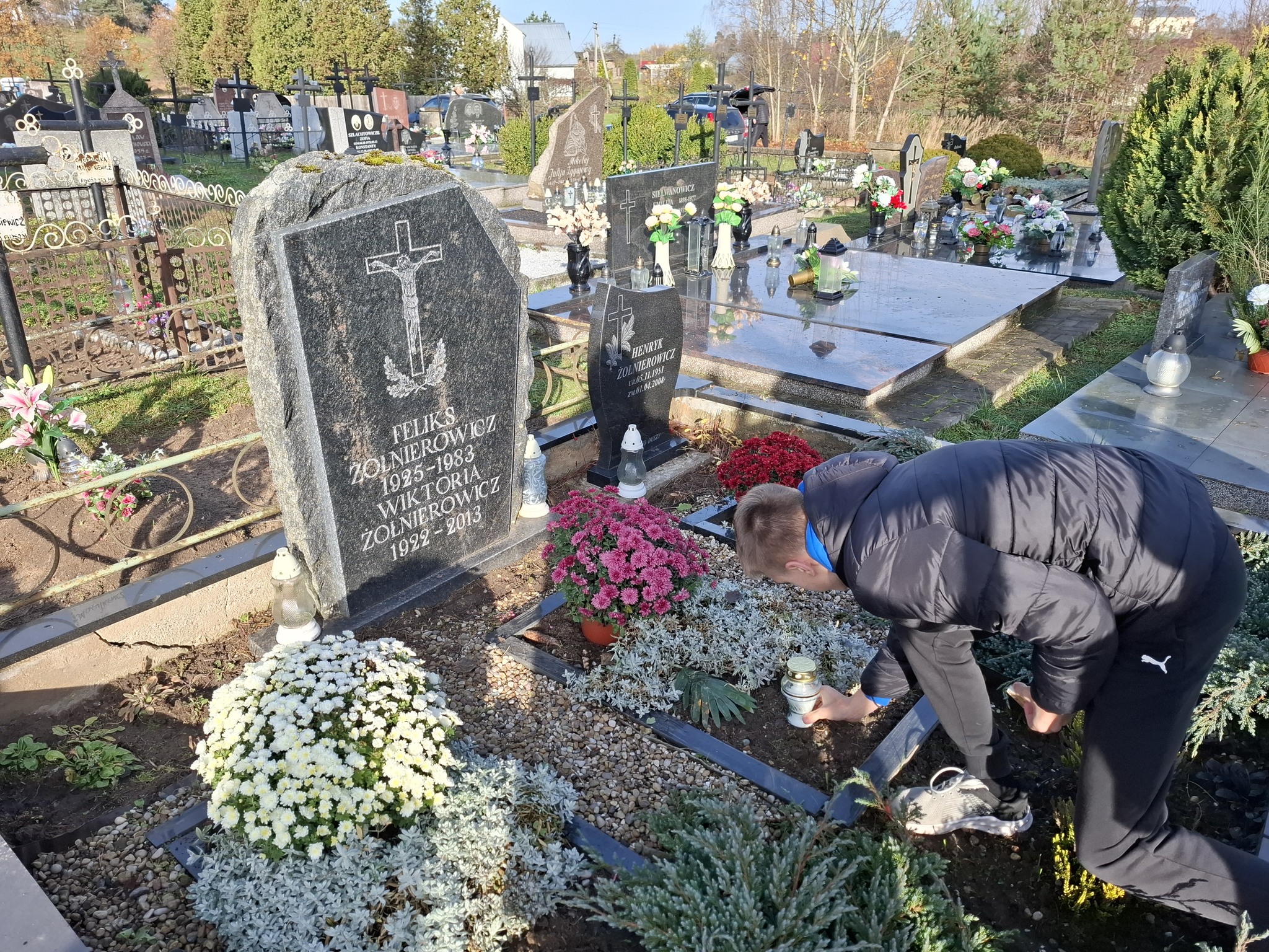Uczniowie odwiedzili także groby zmarłych nauczycieli naszej szkoły, zapalając znicze i z wdzięcznością wspominając ich pracę, oddanie oraz wkład w wychowanie kolejnych pokoleń.