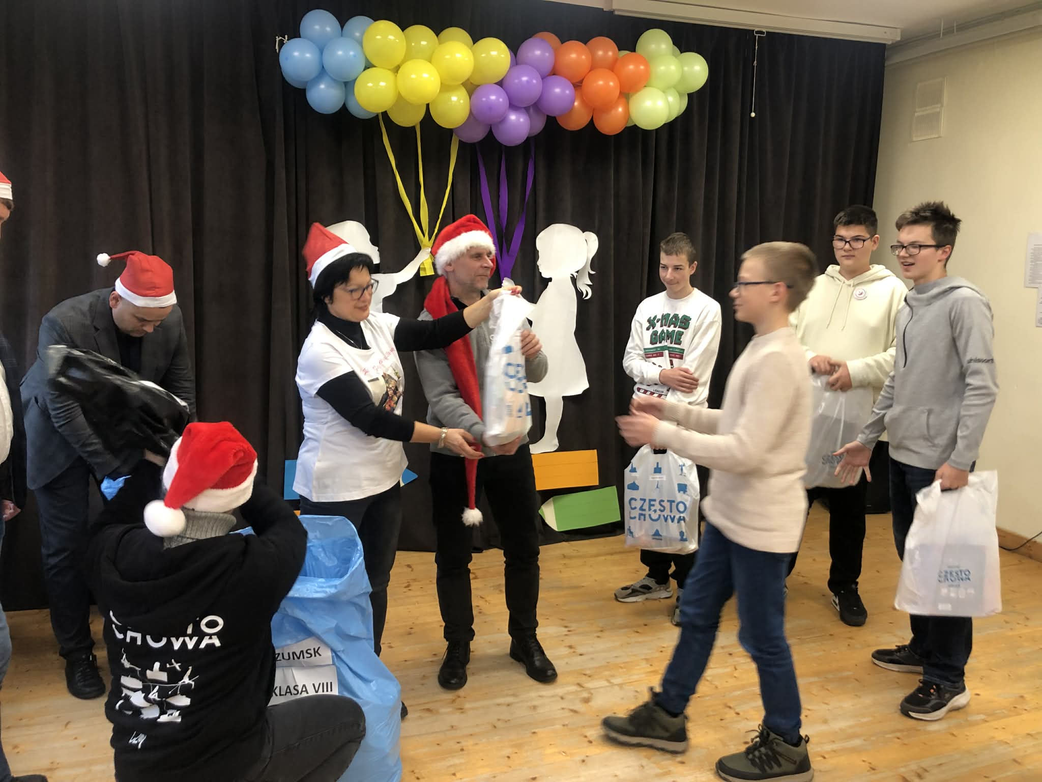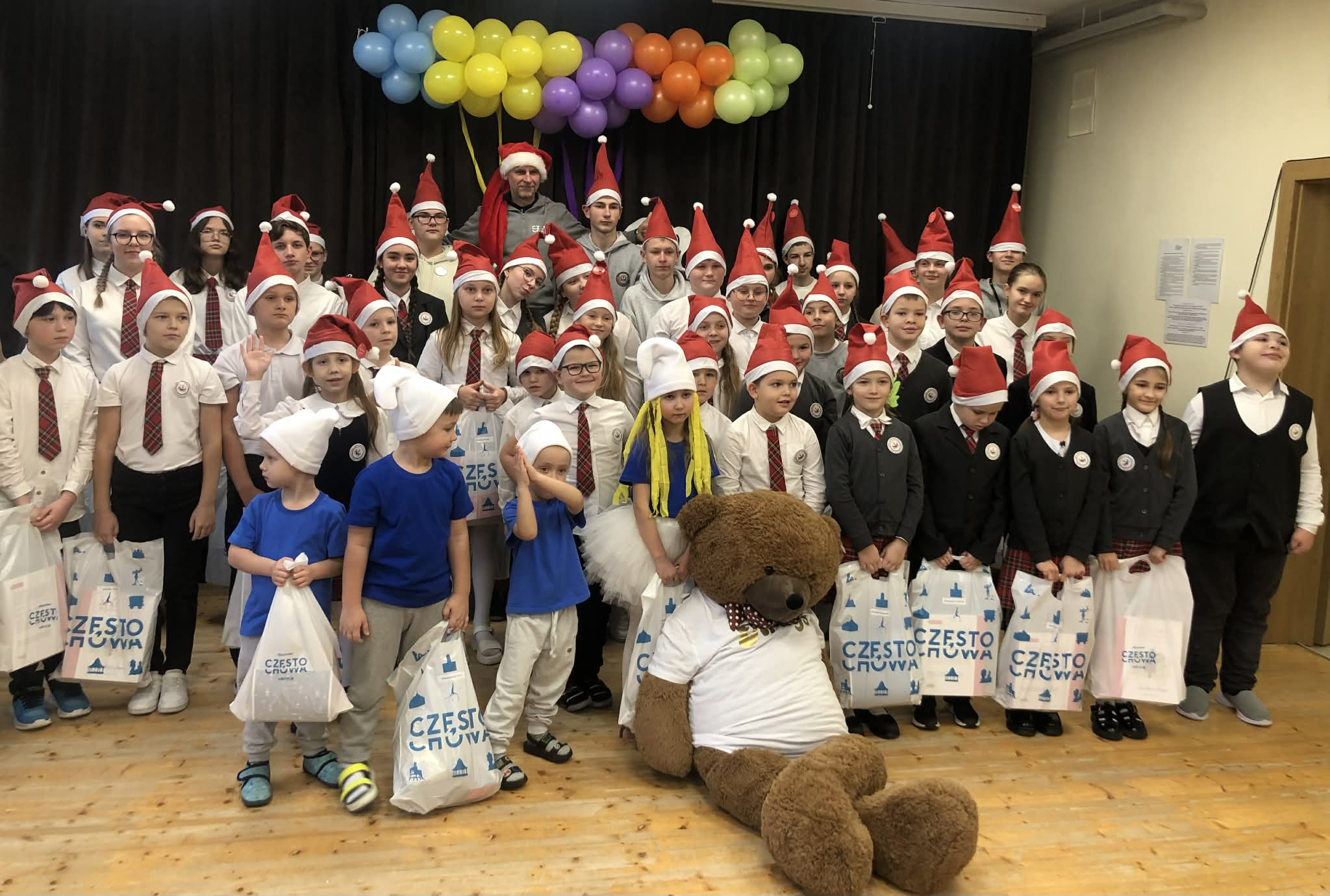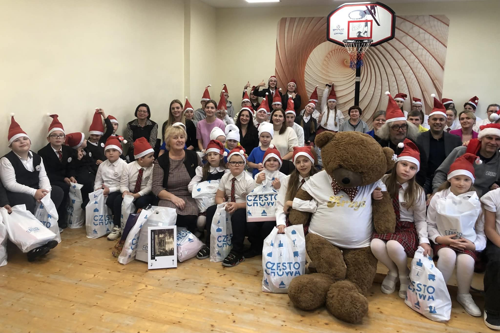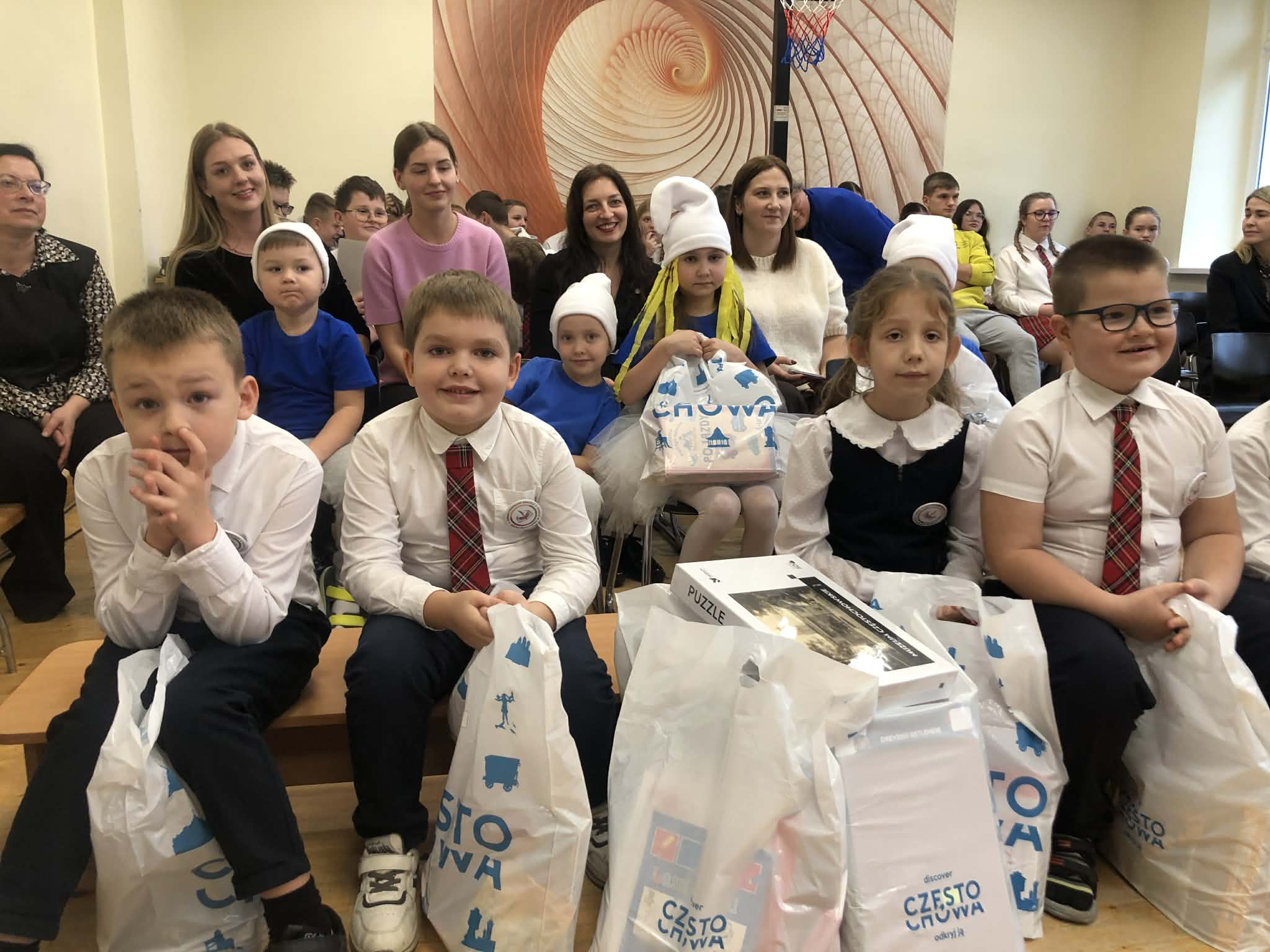 21 listopada odwiedziła nas delegacja z Urzędu Miasta Częstochowy, na czele z kierownikiem Wydziału Oświaty Rafałem Piotrowskim, a także p. dyrektor Beatą Strzelecką-Mach ze Szkoły Podstawowej nr 48 – naszej szkoły partnerskiej 🤝📚 🎶 Uczniowie powitali gości pięknym występem artystycznym. W ramach akcji „Mikołaj na Kresach” 🎅🌍 nasi goście przywieźli mnóstwo radości! 💝 Każdy uczeń otrzymał imienny prezent, co wywołało ogromne uśmiechy i wzruszenie. A największą niespodzianką był… 🧸 OGROMNY miś Krzyś! Maskotkę dla naszej szkoły ufundował Prezydent Miasta Częstochowy Krzysztof matejaszczyk, a wręczył ją osobiście naczelnik. To był dzień pełen emocji, życzliwości.
