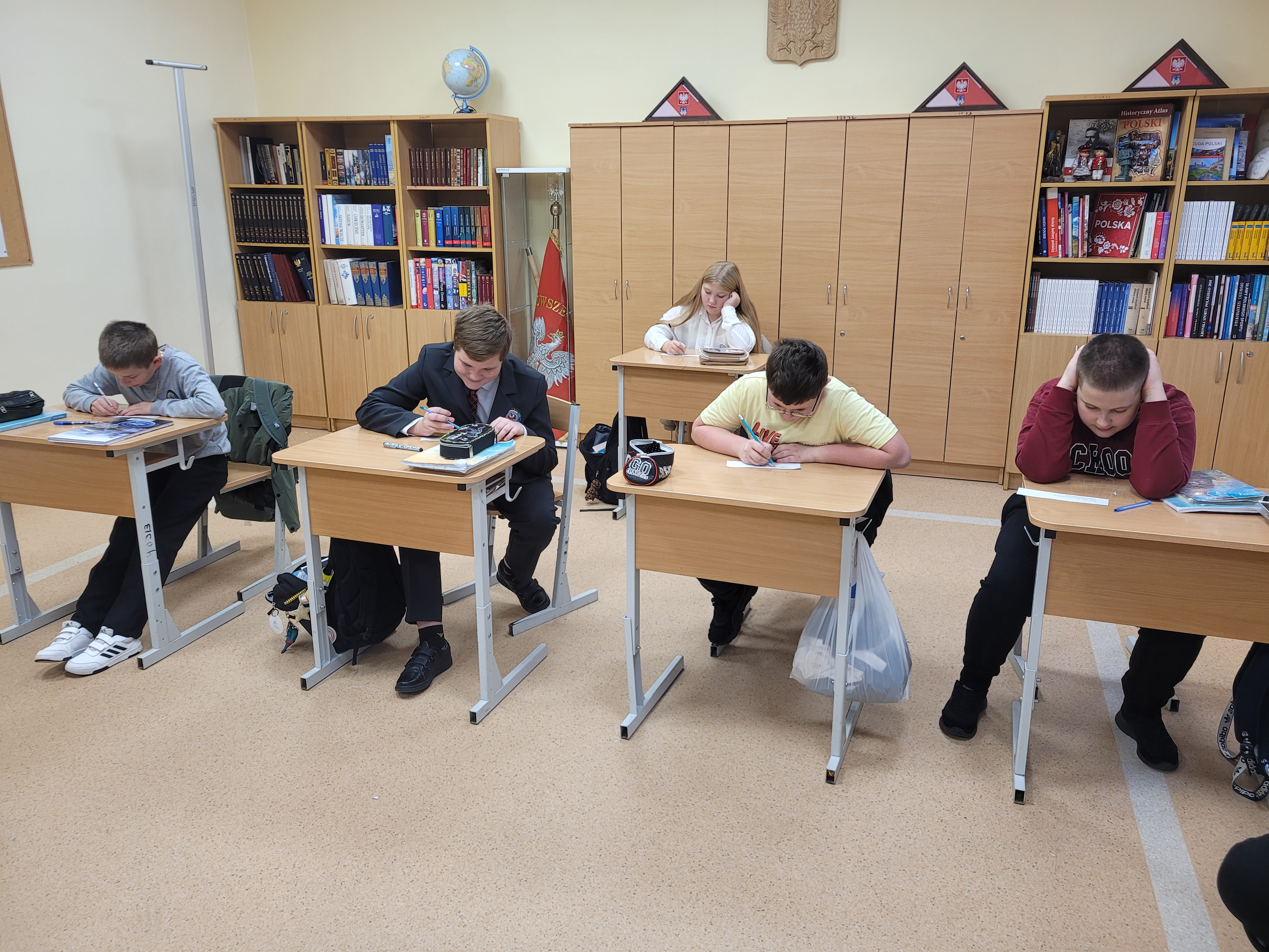 Piątek był zwieńczeniem całego tygodnia – odbył się tematyczny escape room poświęcony twórczości Jana Kochanowskiego. Uczniowie pracowali w grupach, rozwiązując zagadki szyfrowe, literackie łamigłówki oraz zadania logiczne, które prowadziły ich przez kolejne „lokacje” związane z Czarnolasem. To połączenie wiedzy, zabawy i współpracy okazało się świetnym sposobem na utrwalenie materiału oraz integrację klas.