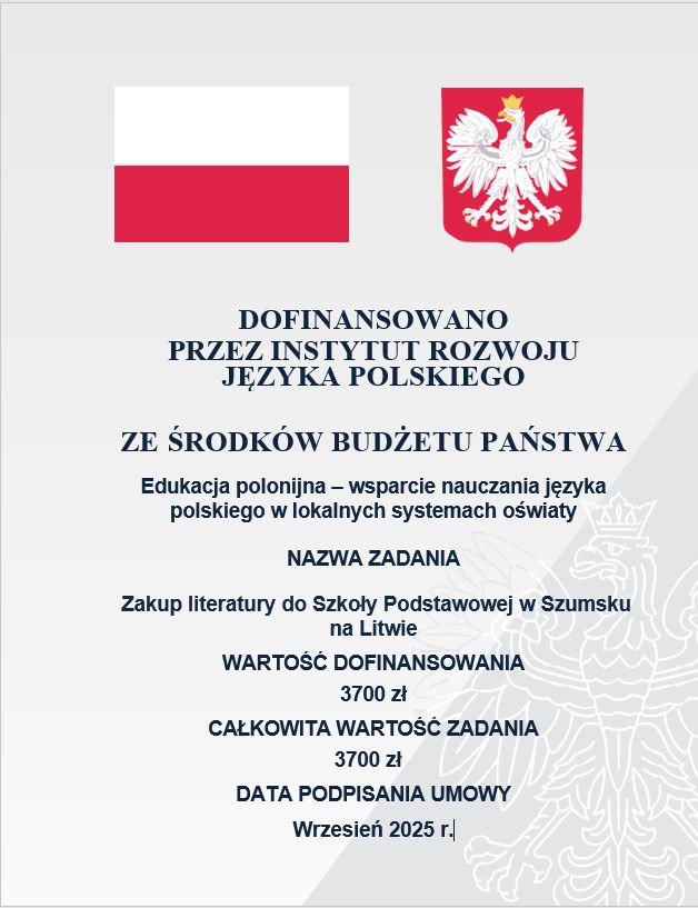 Zakup literatury do Szkoły Podstawowej w Szumsku na Litwie